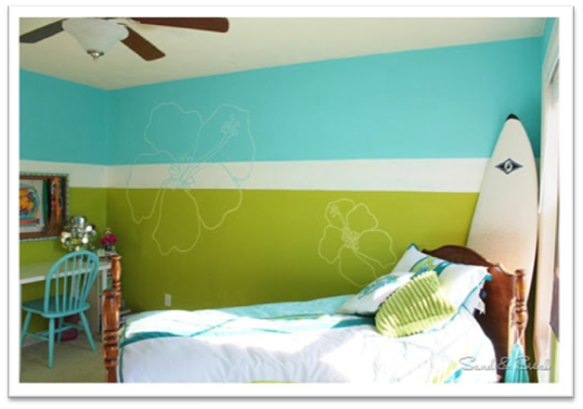 | #14 Stripes and Flowers hanging out together looks great. The things you can do with paint and you can see the rest of this room here I hope you didn't mind a few more easy ways to spruce up your walls? Oh one more thing, wouldn't it be fun to do hand-prints on the wall in the color pallet your decorating the room in? Just a little extra wall sprucing idea. What do you think? Will you use any of these wall ideas for your daughters spaces? Girls are you encouraged to use stickers and paint to spruce up your walls? Tell me in your comments below! |